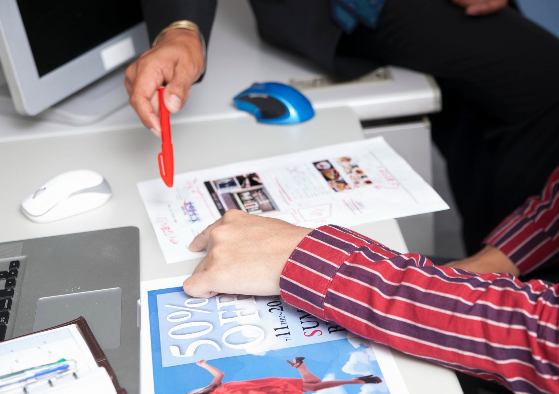 それぞれのクライアント様別の営業や提携デザイナーが窓口となり、ご要望のヒアリングから承ります。現在、北海道、福島、関東圏、愛知、関西圏にて専属デザイナーが常駐しており、大手印刷会社様や大手デザイン会社様のパートナーとしてもデザインの製作企画を行っております。